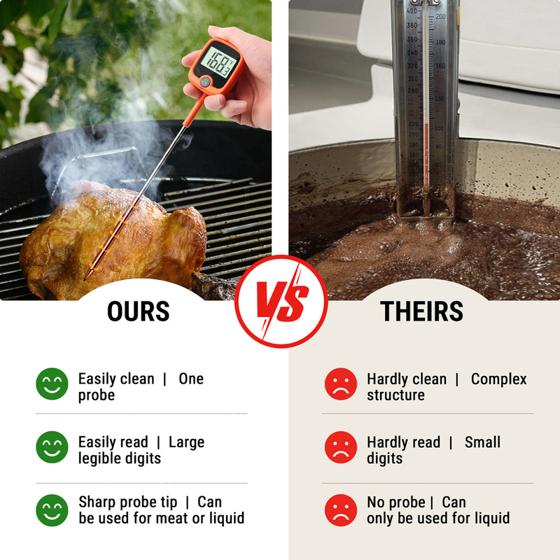 Features a 1.5" LCD with bold digits and a 90° rotating screen, giving you crystal-clear readings at any angle—even over a steaming pot.